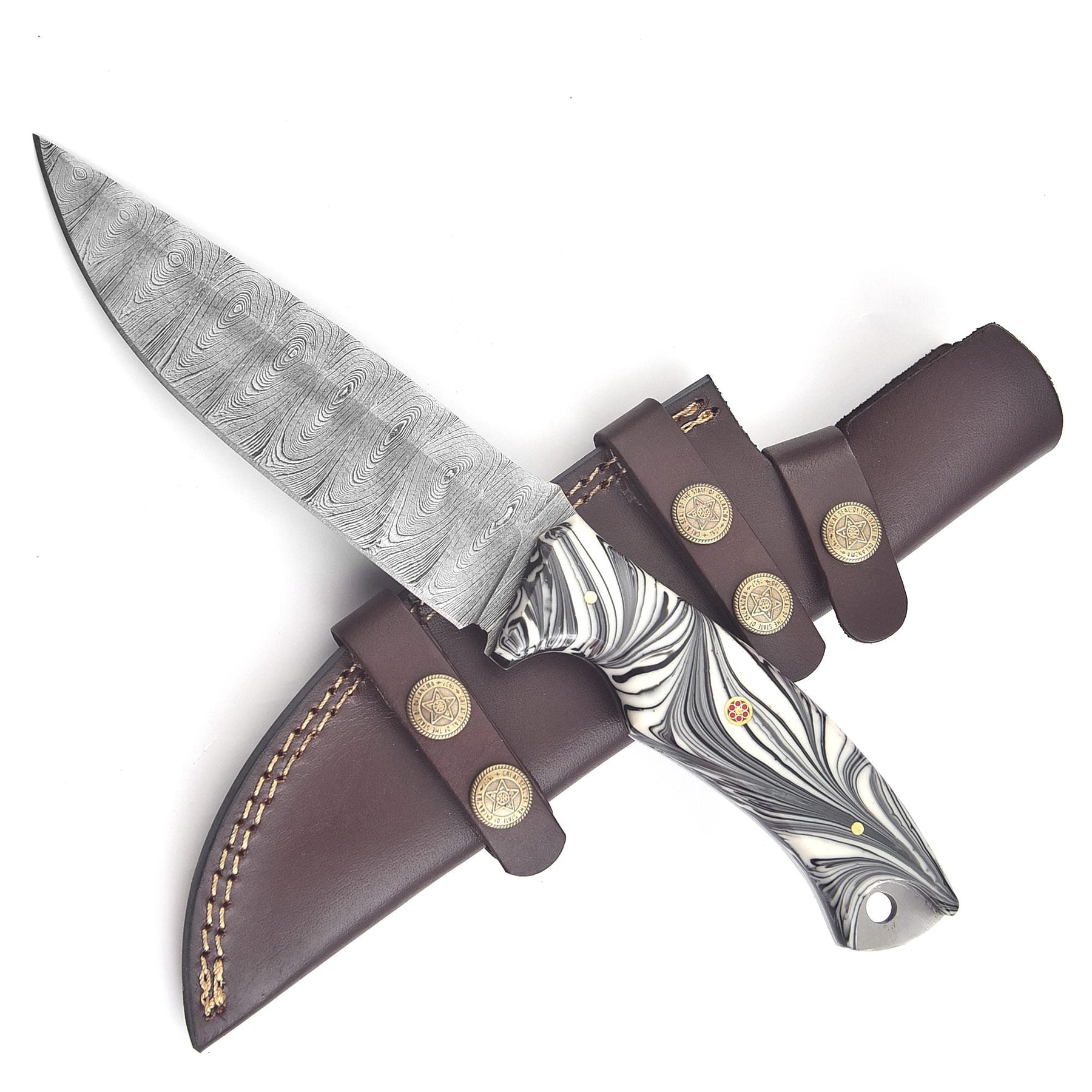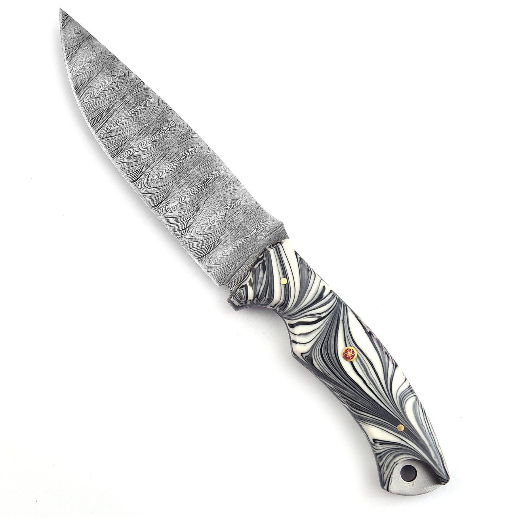 Razor-sharp Damascus blade ideal for clean cutting and durability